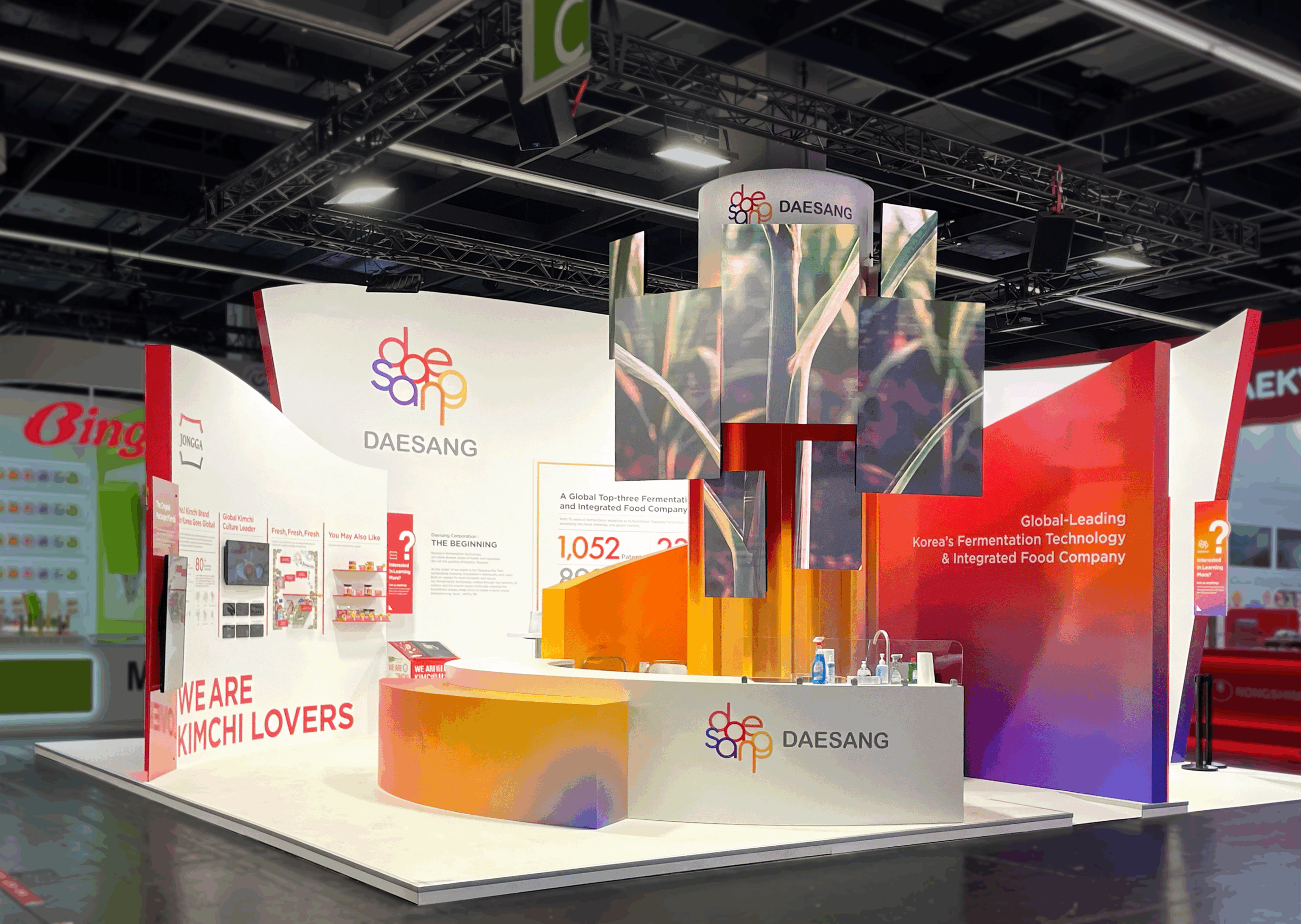 The booth drew widespread attention with its distinctive “Vibrant Bloom” design concept, which incorporated traditional Korean minhwa artwork. Reflecting Daesang’s corporate identity, the space featured a symbolic tree rising five meters from strong roots, creating a visually striking centerpiece. This creative fusion of Korean heritage and contemporary design not only highlighted the aesthetic appeal of K-Food but also significantly elevated Daesang’s brand presence.
